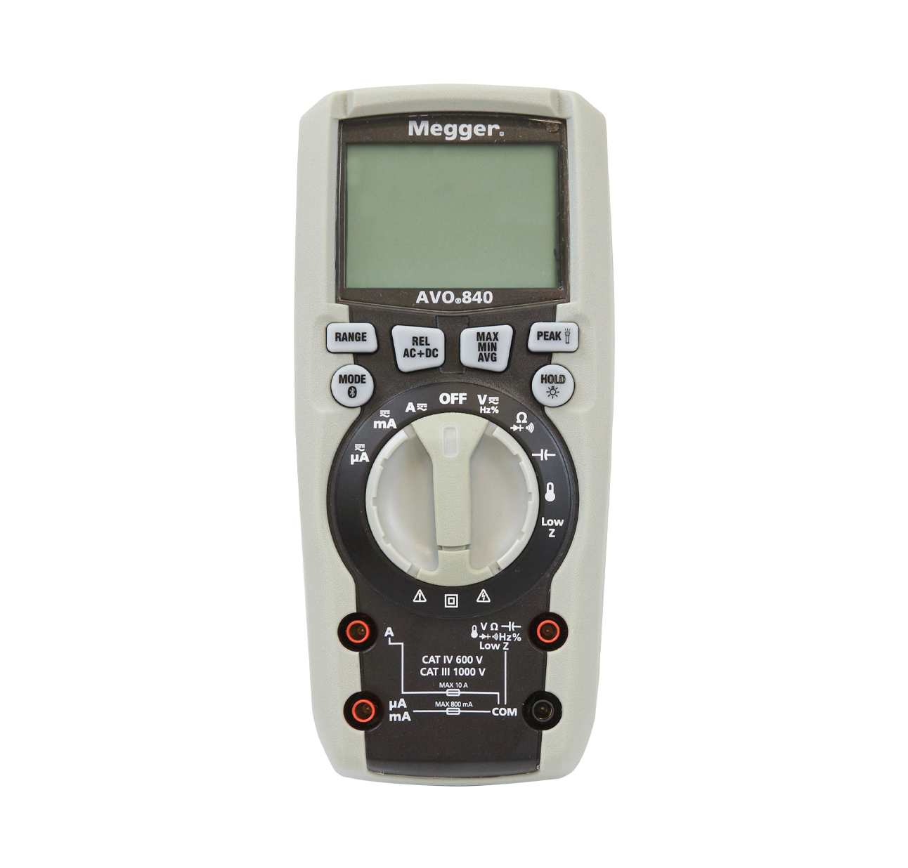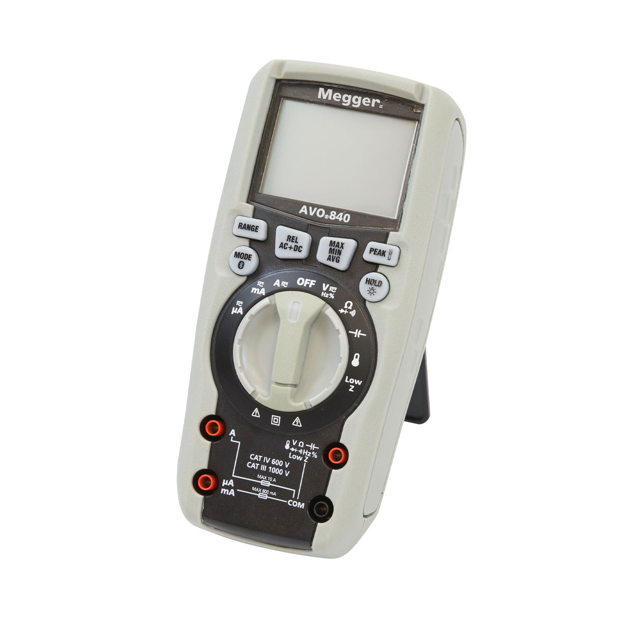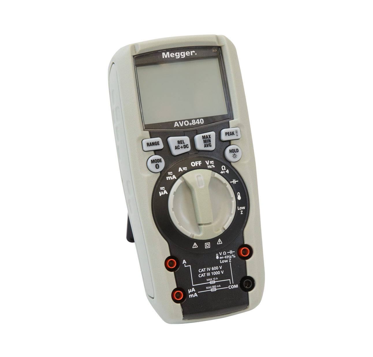 Megger AVO840, endüstriyel ortamlarda ve laboratuvarlarda kullanım için tasarlanmış yüksek hassasiyetli bir True RMS dijital multimetredir. 6000 sayımlı bir ekranın yanı sıra, mobil uygulama üzerinden gerçek zamanlı veri paylaşımı için Bluetooth bağlantı özelliğine sahiptir. CAT III 1000 V ve CAT IV 600 V güvenlik sınıfına, hızlı AD dönüştürme örnekleme süresine ve 2 metreden düşmeye dayanıklı olan sağlam bir tasarıma sahiptir.