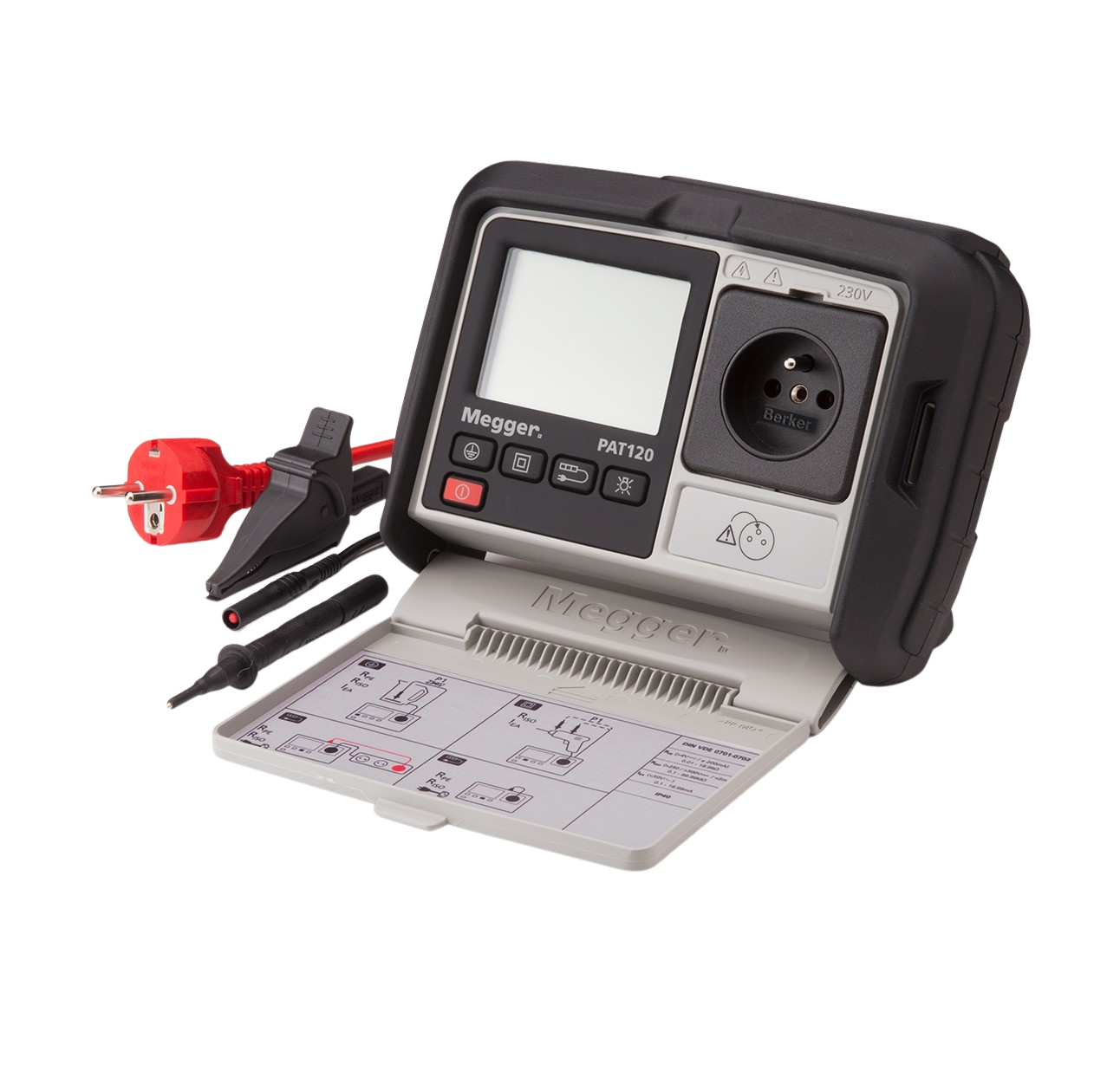 PAT120 basit PAT test cihazı , Sınıf I, Sınıf II ve sabit geçiş limitleriyle güç ve uzatma ucu testi sunar; İki izolasyon testi voltajına sahip olduğu için IT ve aşırı gerilim korumalı ekipmanı test etmek için kullanılabilir.