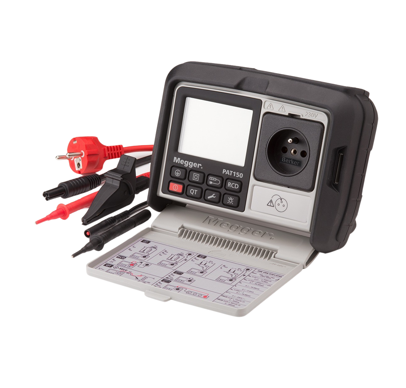 PAT150 tam işlevli PAT test cihazı , 10 mA ve 30 mA'da Taşınabilir RCD (PRCD'ler) testi, süreklilik için ayrı testler, izolasyon, şebeke beslemeli sızıntı testi ve hızlı test (QT) düğmesini kullanarak SELV ölçümleri sunar ve aşağıdakiler için kullanılabilir: sabit cihazları test etmek.