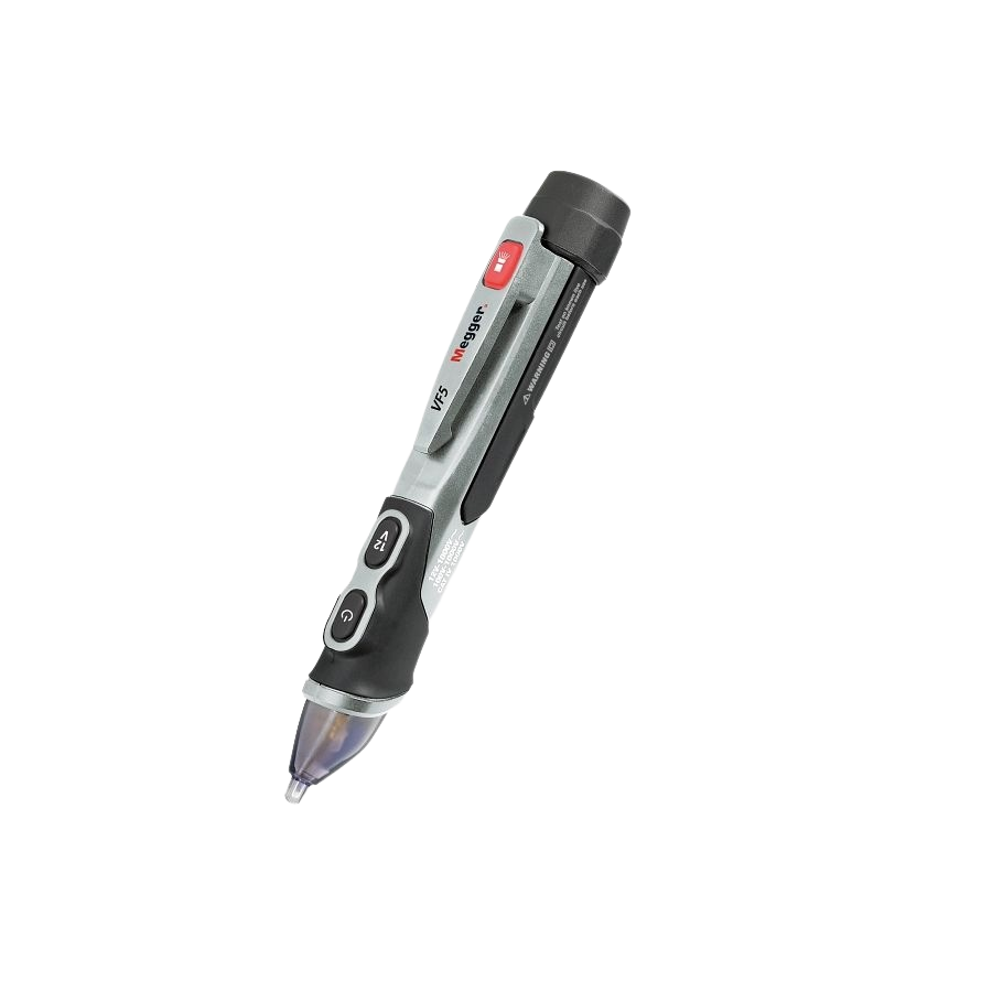 Megger VF5 Voltaj Dedektörü, beyaz naylon ucun içinde yer alan parlak kırmızı bir LED, sesli bir siren ve titreşim uyarısı ile gösterilen AC voltajının varlığını kontrol etmek için kullanılmak üzere tasarlanmıştır. Dedektör hem düşük voltaj (12 V ila 1000 V) hem de orta voltaj (100 V ila 1000 V) aralıklarına sahiptir. VF5, zayıf ışıkta kullanım için parlak beyaz LED el fenerinin ek avantajına sahiptir.